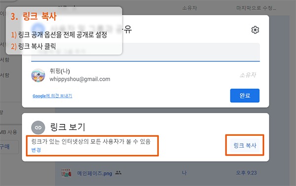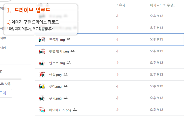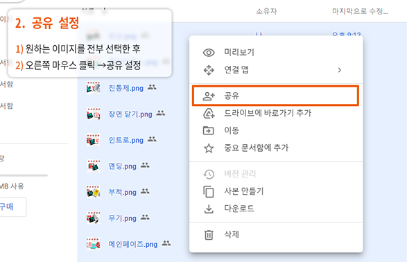 사용하실 이미지를 구글 드라이브에 업로드합니다.이때 모든 이미지는 '전체공개'로 업로드합니다.